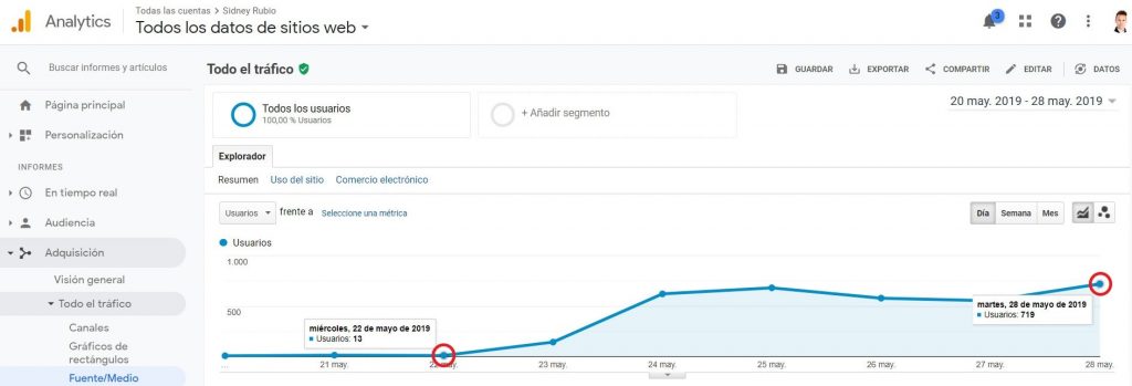 Pues bien, pasé en UN SOLO DÍA, de tener 13 visitas diarias a tener más de 145, pero ahí no queda todo, solo una semana después, ya tenia más de 700 visitas diarias, ¿como?